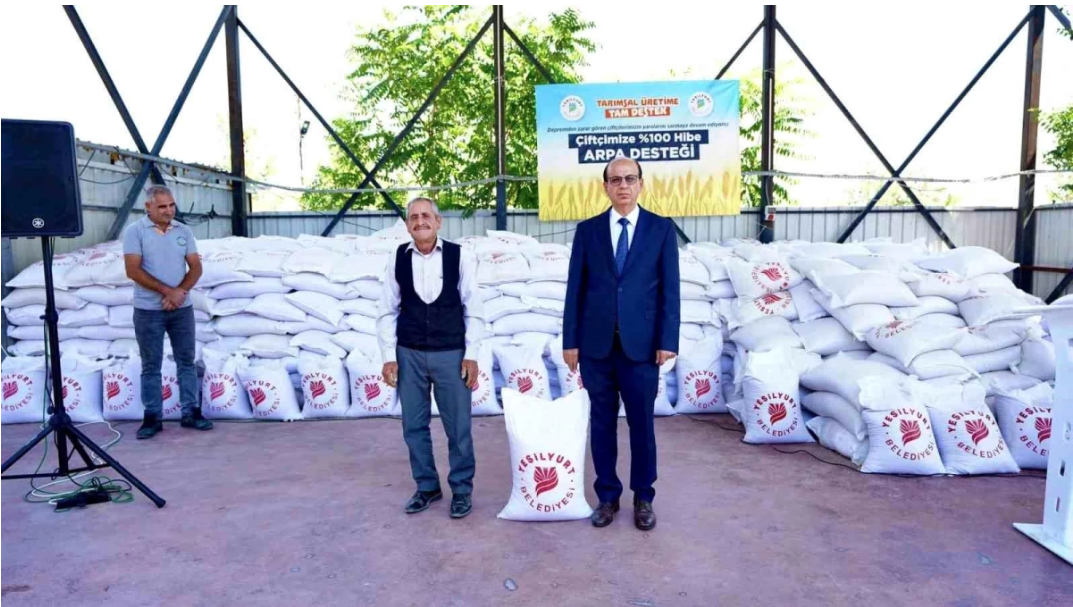 Yeşilyurt Belediyesi, Tarımsal Üretim ve AR-GE Sahasında hasadı yapılan 35 ton arpayı depremde zarar gören çiftçilere ücretsiz olarak dağıttı. Dağıtım törenine Yeşilyurt Belediye Başkanı Prof. Dr. İlhan Geçit, İl Tarım ve Orman Müdürü Osman Akar ve diğer yetkililer katıldı. Tarım sektörünün gelişmesine verilen destekler vurgulandı.